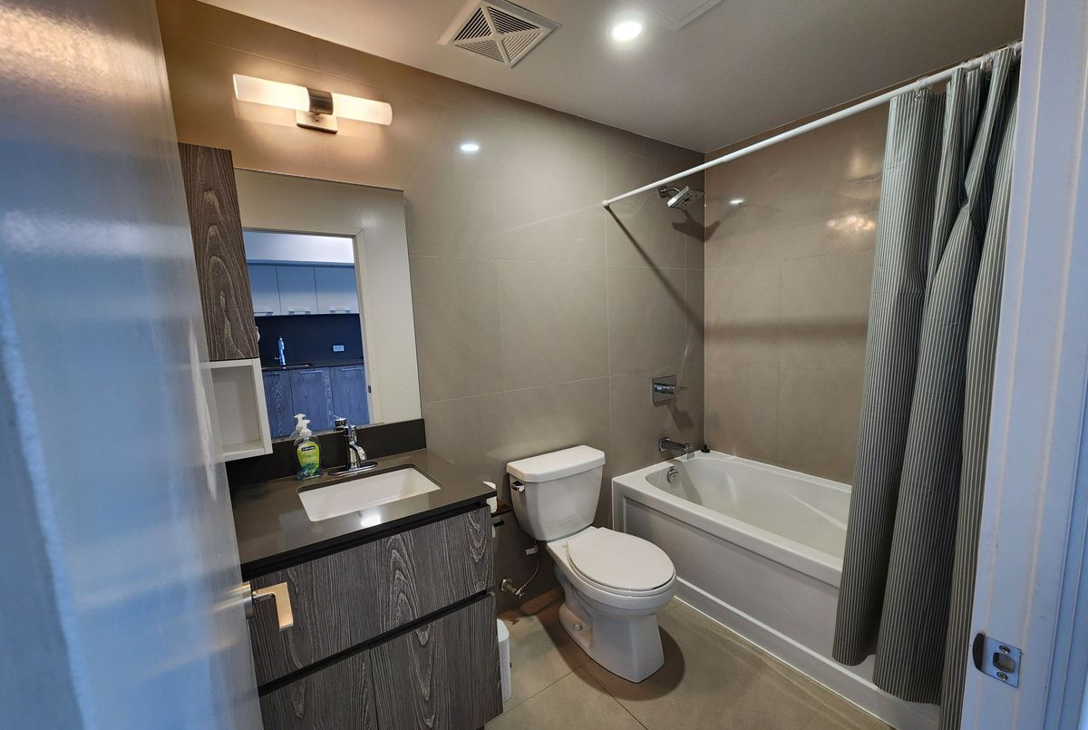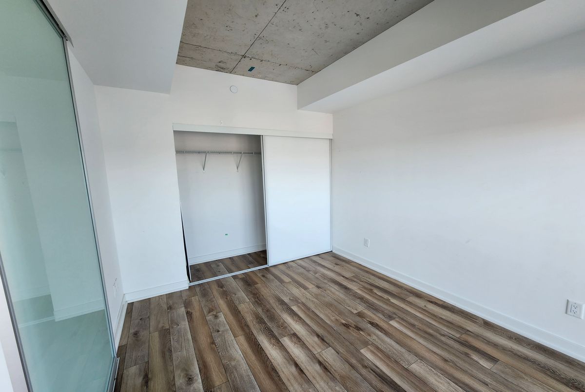 Welcome to Riverside Square. A community at the edge of Queen East and DVP. Located in the South Riverdale/Leslieville Neighbourhood. 2 Years old Bright and Spacious 1 bedroom unit with 80Sqft Balcony. Floor to Ceiling with unobstructed North View. Excellent Commute with 24Hrs Streetcar at the doorstep. Quick access to DVP and Gardiner Expressway. Condo Amenities: Rooftop Swimming pool and sleek private lounge and fully equipped fitness centre.